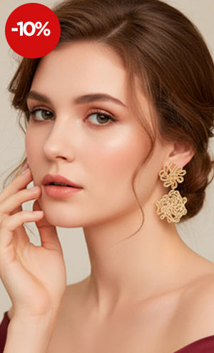 Aretes Oro laminado inspiración floral mate & cristal checo Golden Chic