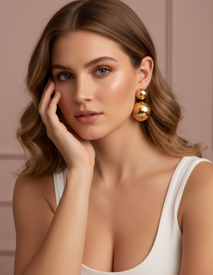 Aretes Oro laminado arracada frontal orgánica Golden Chic