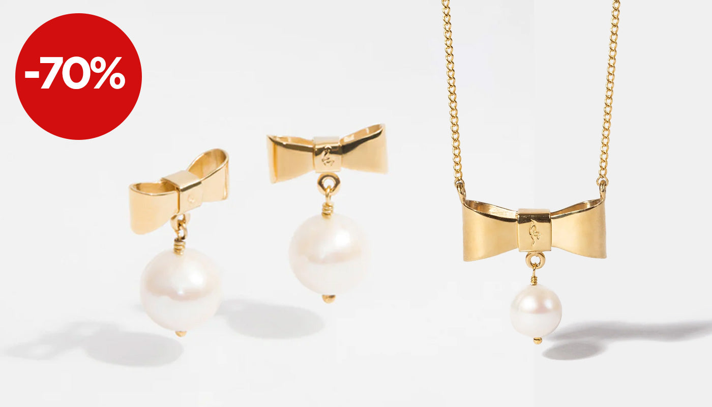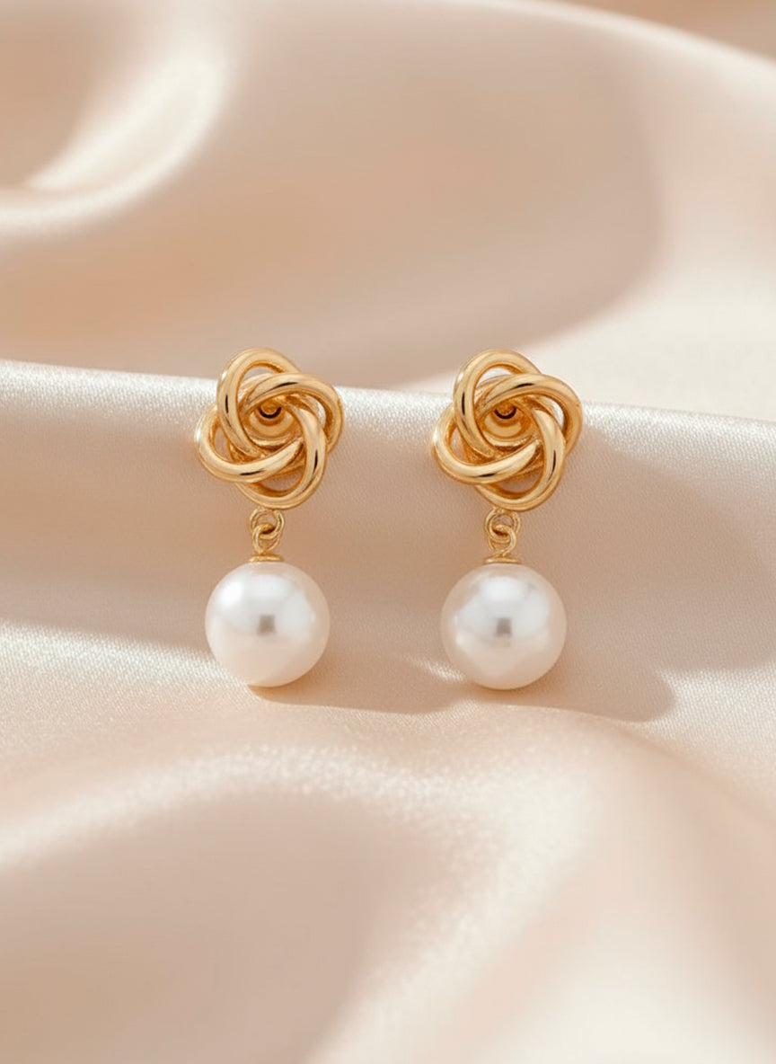 Aretes Oro laminado perla Mabe & topacio blanco Golden Chic