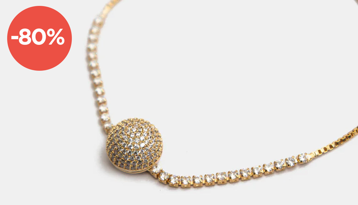 Pulsera en plata .925 con baño de oro 22 kt y topacios blancos en forma circular Festive Style