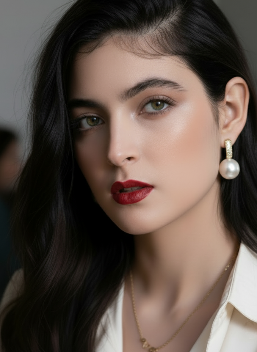 Aretes Oro laminado perla Mabe & topacio blanco Golden Chic