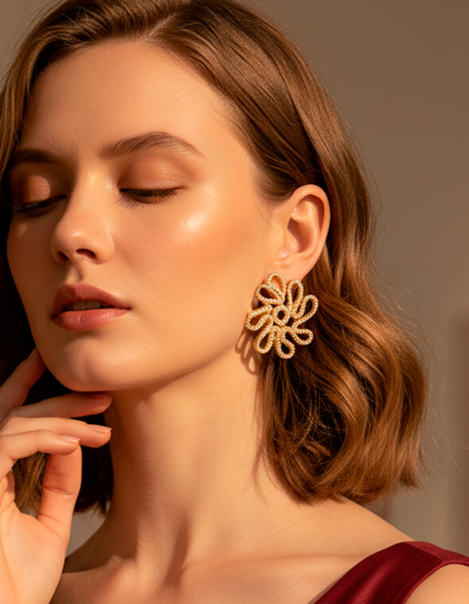 Aretes Oro laminado inspiración floral mate & cristal checo Golden Chic