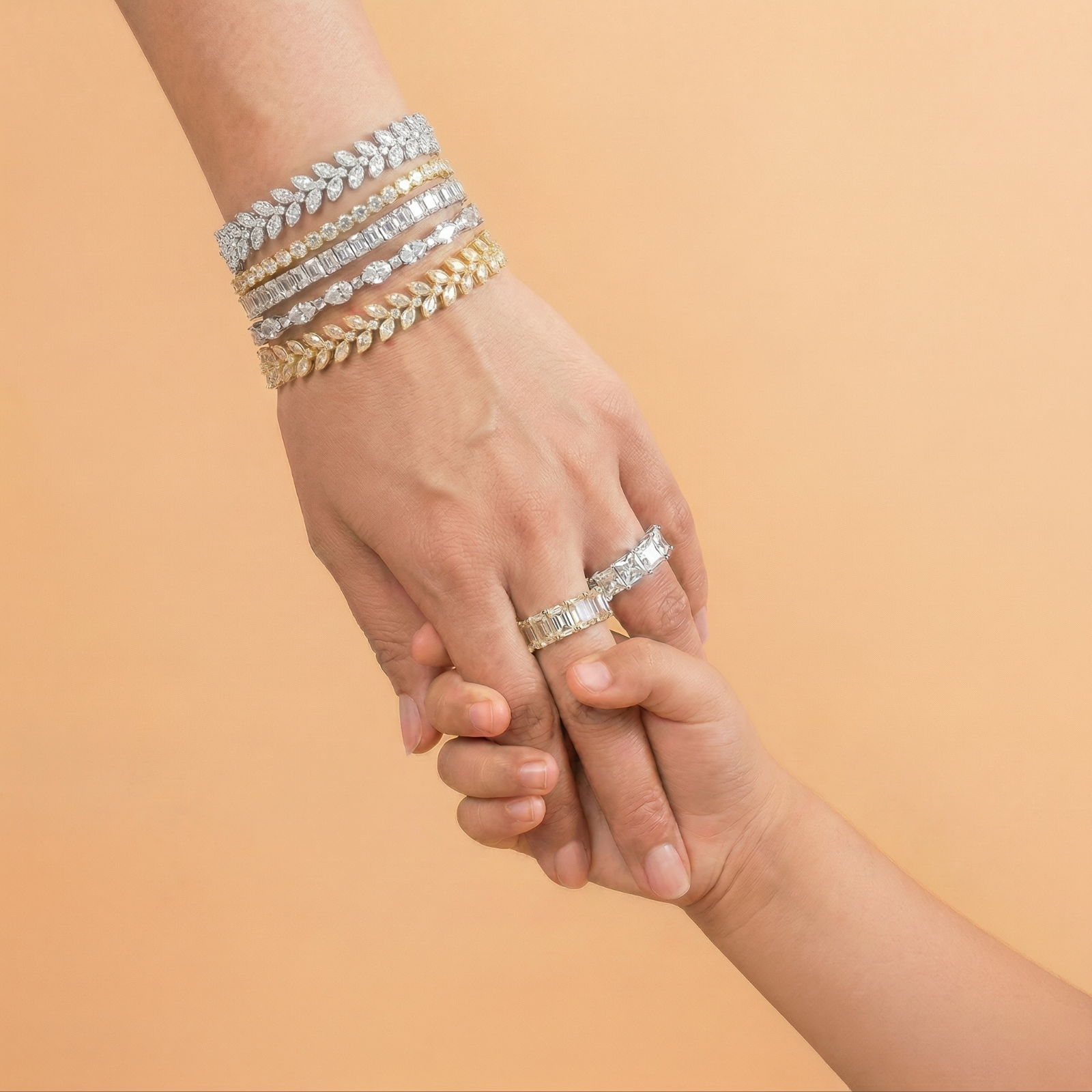 Brazalete con Baño de Oro 22 kt, Doble Hilo con Topacio Rectangular y Topacios Blancos Festive Style
