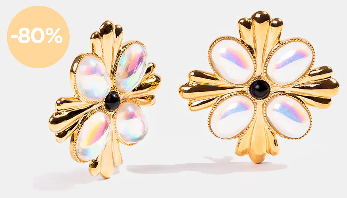 Aretes mesh de bronce con baño de oro 22k y topacios blancos Festive Style