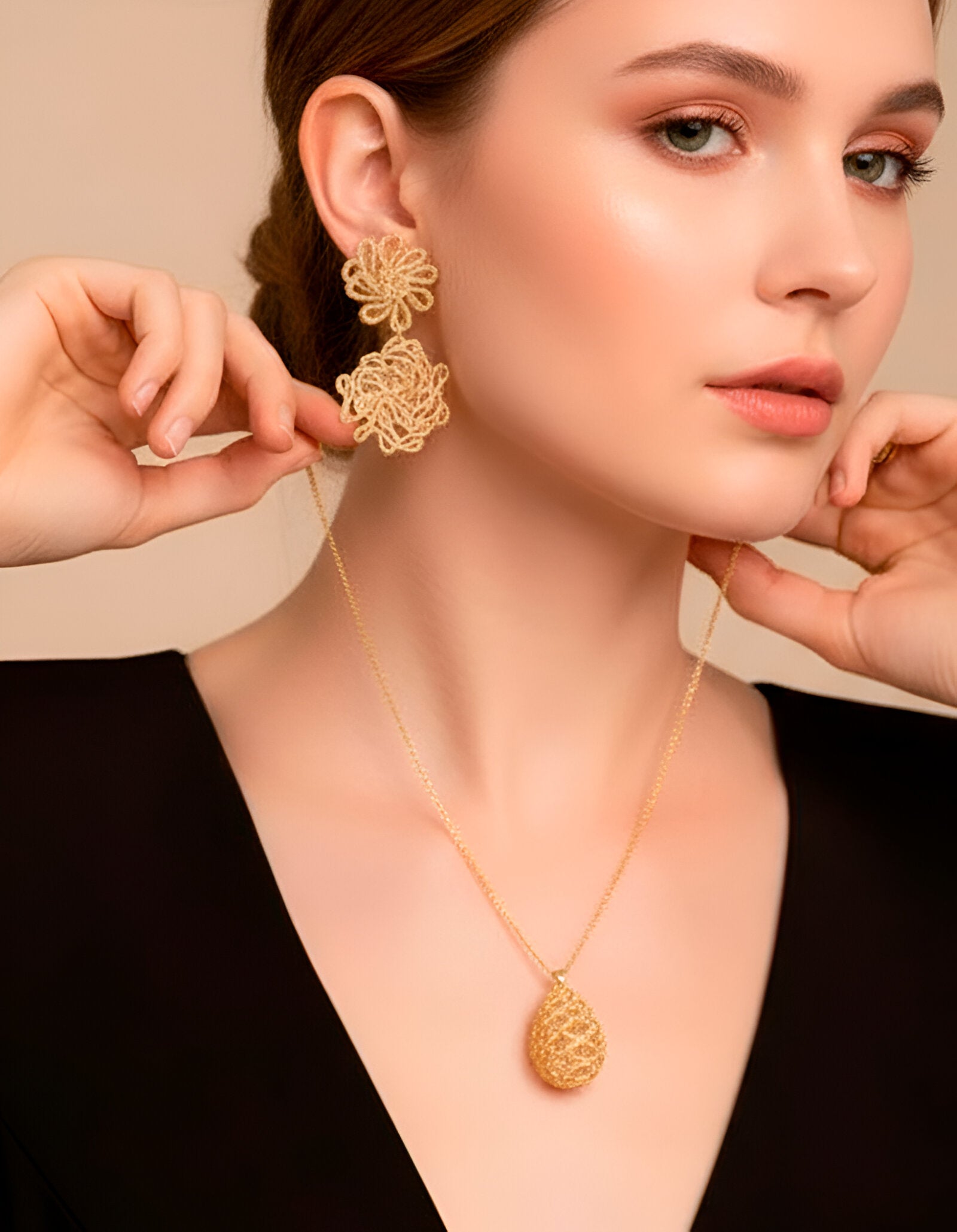 Cada pieza está elaborada en bronce o metal base y recubierta con un baño de Oro de 22 quilates o de Rodio, garantizando un acabado vibrante y de alta calidad.