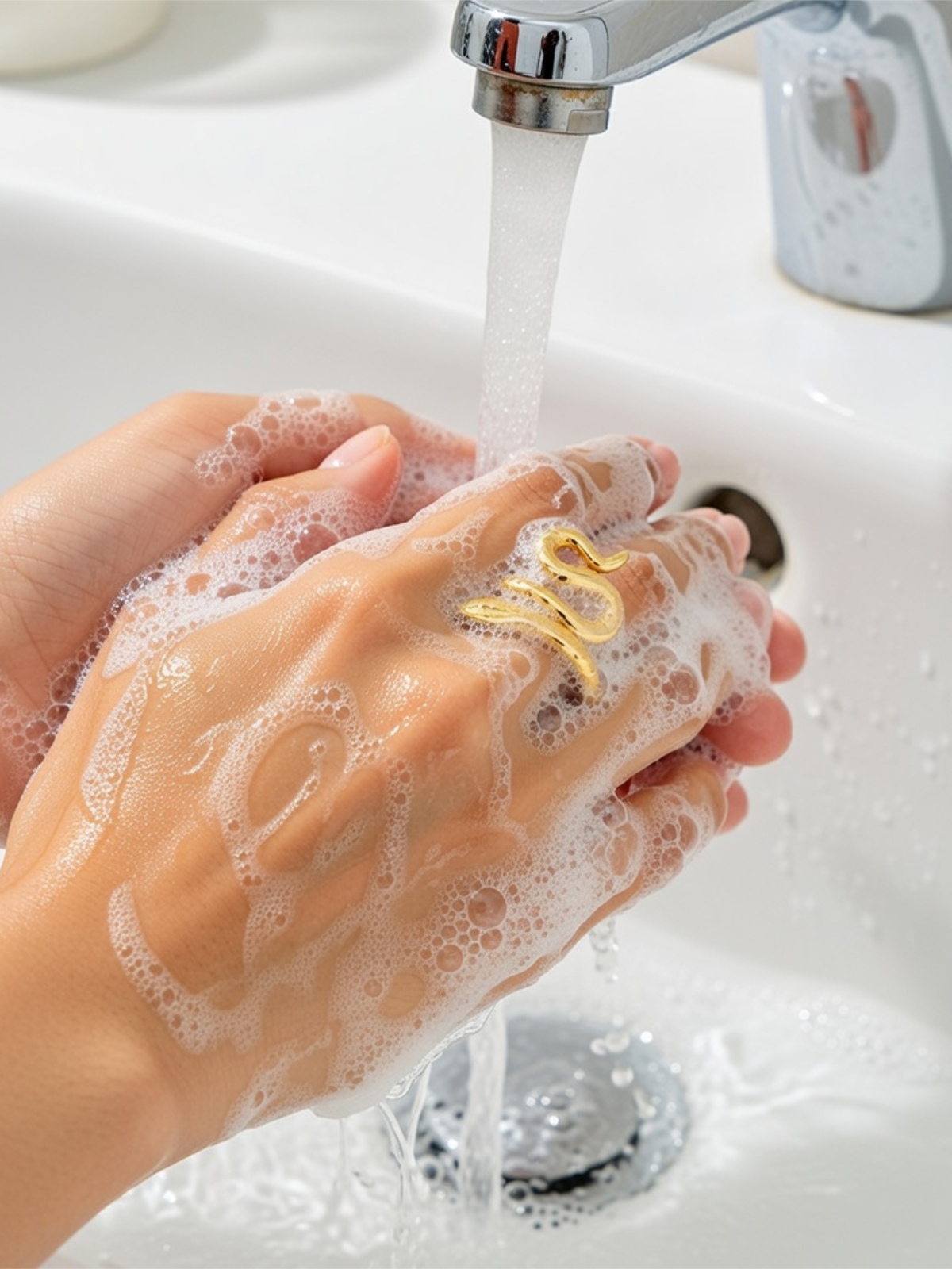 El jabón puede dejar una película invisible sobre los metales que con el tiempo apaga su brillo natural. Los jabones en barra suelen ser más agresivos, ya que se acumulan en cavidades, uniones y engastes, reteniendo suciedad y dificultando su limpieza.